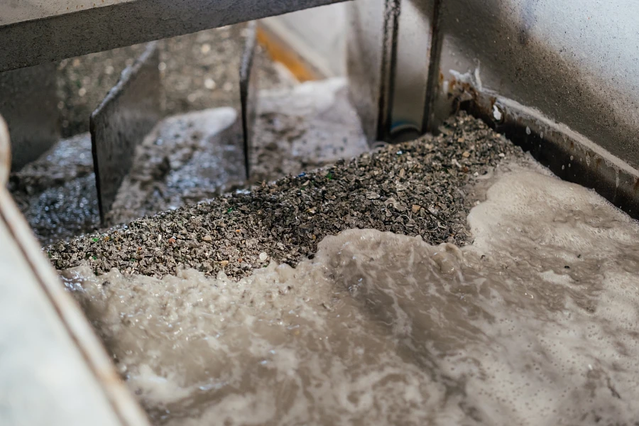 This creates two distinct layers within the material - one enriched with heavy metals and the other lighter particles like Aluminium and minerals. The light particles undergo further refinement through the application of Eddy Currents, resulting in two distinct product streams. The first stream comprises high-quality aluminium, ready to be supplied to Aluminium smelters for various applications. The second stream is a mineral mixture with a purity suitable for use in a wide range of concrete products.